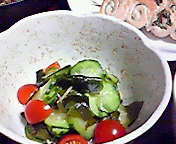 胡瓜と若布とプチトマト